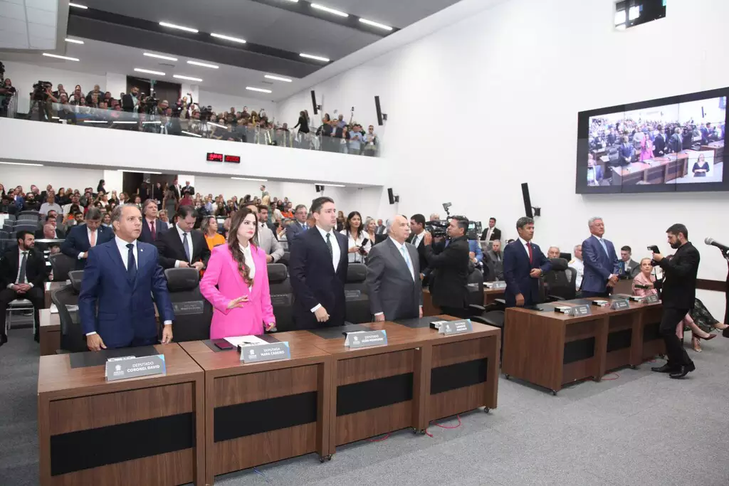 Deputados estaduais durante posse na atual legislatura da Alems (Foto: Alems)