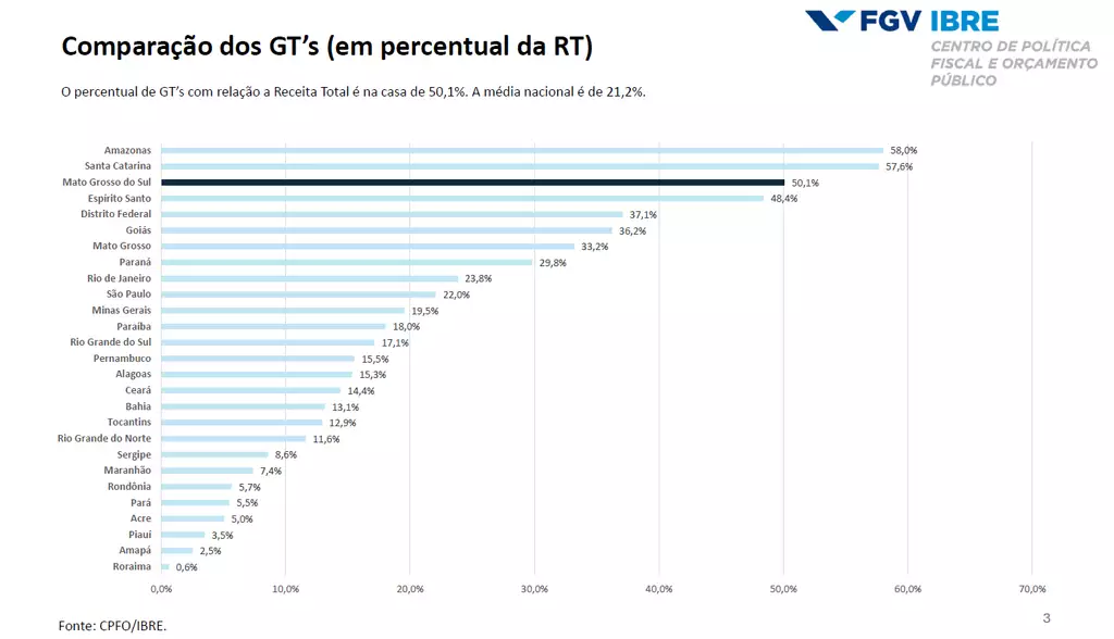 A política agressiva de concessão de benefícios fiscais chama atenção dos autores do estudo. Os gastos tributários previstos para 2026 representam 50,1% da receita total do Estado, estimada em R$ 23,862 bilhões (excluindo o regime previdenciário). Mato Grosso do Sul é o terceiro estado do país com maior percentual de incentivos sobre a receita, atrás apenas de Amazonas e Santa Catarina.